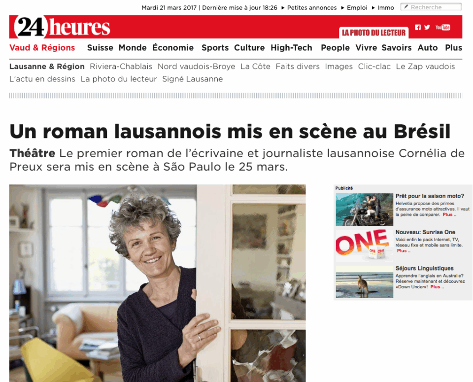 Un magnifique article d’Antoine Hürlimann dans le 24 heures. Retour sur la formidable aventure de Cornélia De Preux au Brésil. Cliquez sur l’article pour l’ouvrir: