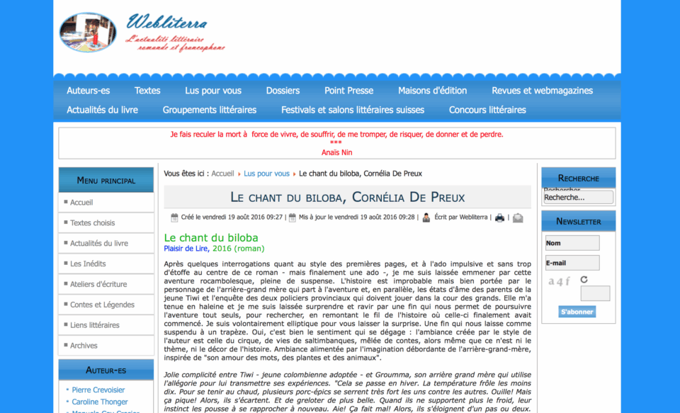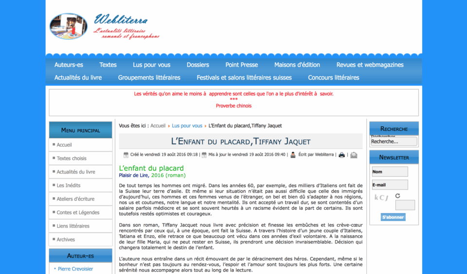 Une chronique de « Liberté conditionnelle » sur Weblittera.ch