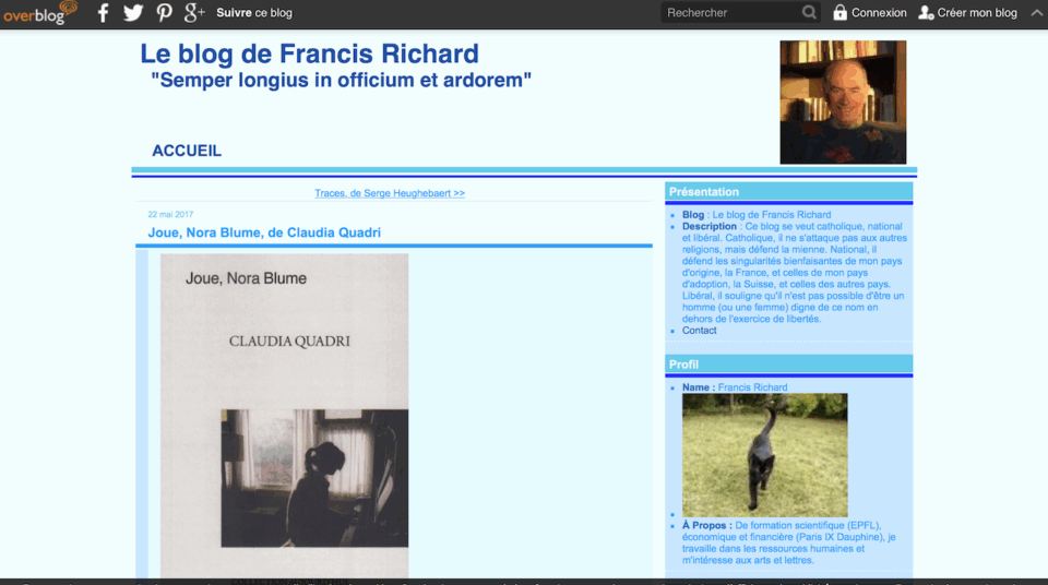 Sur le blog de Francis Richard, une jolie chronique de Joue, Nora Blume de Claudia Quadri. Cliquez sur l’image ci-dessous pour la découvrir: